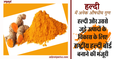 अश्रुत पूर्वा II नई दिल्ली। पिछले दिनों भारत सरकार ने हल्दी और उससे जुड़े उत्पादों के विकास के लिए...