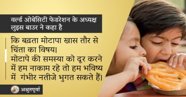 अश्रुतपूर्वा II यह 2014 का यह आंकड़ा है। तब बताया गया था कि देश में 20 करोड़ लोग मोटापे के शिकार...