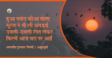अमनदीप गुजराल ‘विम्मी’ II हुआ सवेरा कौआ बोलासूरज ने भी ली अंगड़ाईउजली-उजली रंगत लेकरकिरणें आज धरा...