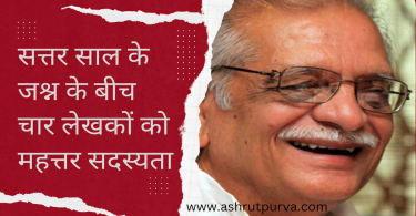 अश्रुत पूर्वा संवाद II नई दिल्ली। गीतकार-कवि और शायर गुलजार को भारतीय ज्ञानपीठ पुरस्कार देने का...