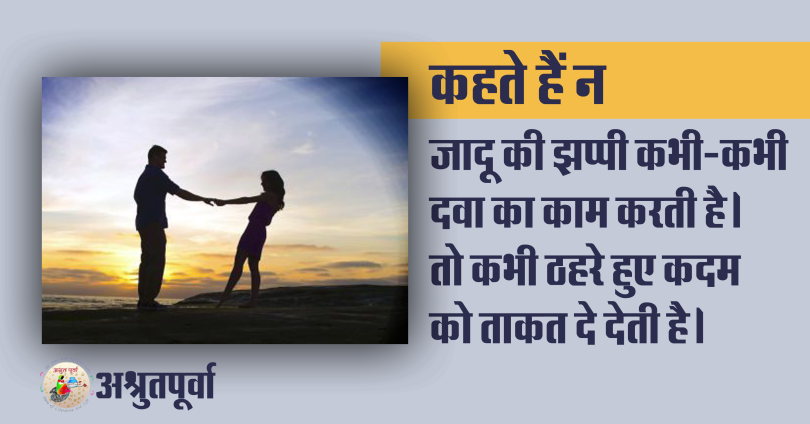 गले लगना या गले लगा लेना, दोनों ही कितना सुकून से भर देता है। दोनों को अमीम खुशी मिलती है इसमें। यानी जो गले लगता है और जो लगा लेता है। कहते हैं न जादू की झप्पी कभी-कभी दवा का काम करती है। कभी हौसला बढ़ा देती है, तो कभी ठहरे हुए कदम को ताकत दे देती है।