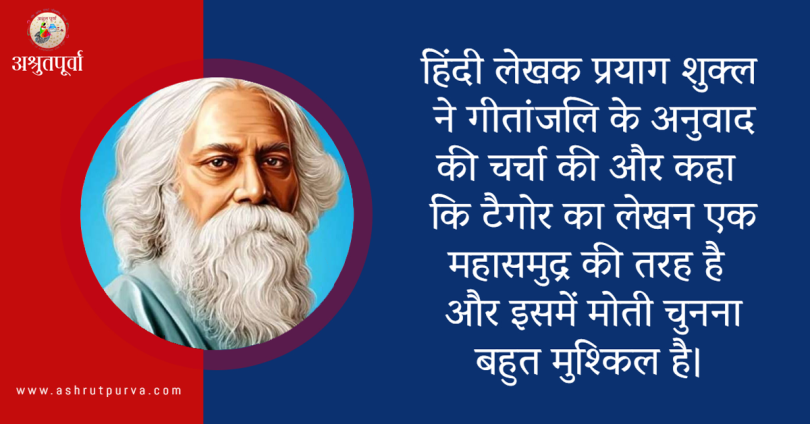 गोष्ठी में हिंदी लेखक प्रयाग शुक्ल ने गीतांजलि के अनुवाद की चर्चा की और कहा कि टैगोर का लेखन एक महासमुद्र की तरह है और इसमें मोती चुनना बहुत मुश्किल है। वहीं मोहनजीत सिंह ने रवींद्रनाथ टैगोर द्वारा बलराज साहनी को पंजाबी में लिखने के लिए प्रोत्साहित करने की चर्चा की। टैगोर पर सिख गुरुओं का प्रभाव था। उन्होंने उन पर कविताएं लिखीं। एचएस शिव प्रकाश ने कन्नड़ में हुए टैगोर की कृतियों के अनुवाद की चर्चा करते हुए कहा कि मन की आजादी की जो बात कही है वह सबसे अधिक प्रभावित करती है।