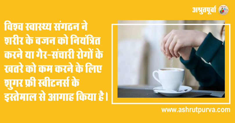 नई दिल्ली। क्या आप मधुमेह के मरीज हैं? या मोटापे के शिकार हैं? और अगर नहीं भी हैं, तो भी यह आपके लिए काम की खबर है? अकसर आपने देखा होगा कि कुछ लोग खासकर मधुमेह के मरीज चाय, काफी या अन्य पेय में शुगर फ्री स्वीटनर का बेधड़क प्रयोग करते हैं। मगर यह खतरनाक हो सकता है। पिछले दिनों विश्व स्वास्थ्य संगठन ने शरीर के वजन को नियंत्रित करने या गैर-संचारी रोगों के खतरे को कम करने के लिए शुगर फ्री स्वीटनर्स (मिठास पैदा करने वाले पदार्थ) के इस्तेमाल से आगाह किया है।
