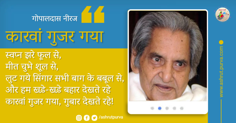 नीरज जी की कविताएं तो हम सबने बार-बार सुनी ही हैं, लेकिन कुछ फिल्मी गीतों को छोड़ कर, शायद सब गीत आप सबको याद न हों, तो उनकी सूची आप देख सकते हैं-