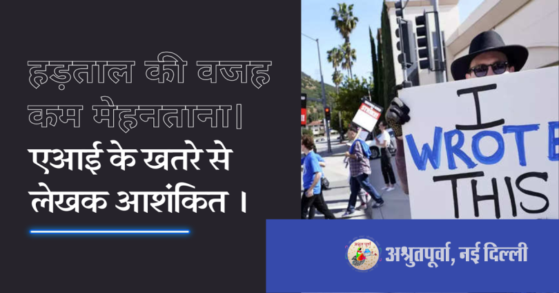 नई दिल्ली। जी हां, अब लेखक भी हड़ताल करने लगे हैं। मगर यह हड़ताल भारत में नहीं हॉलिवुड में हो रही है। लॉस ऐंजिलिस से आ रही खबरों के मुताबिक हॉलिवुड के कलाकार और लेखक हड़ताल पर चले गए हैं। तिरसठ साल में यह पहली बार ऐसा हुआ है। इस हड़ताल से फिल्मों और टीवी प्रोडक्शन का पूरा कार्य बंद हो गया है।