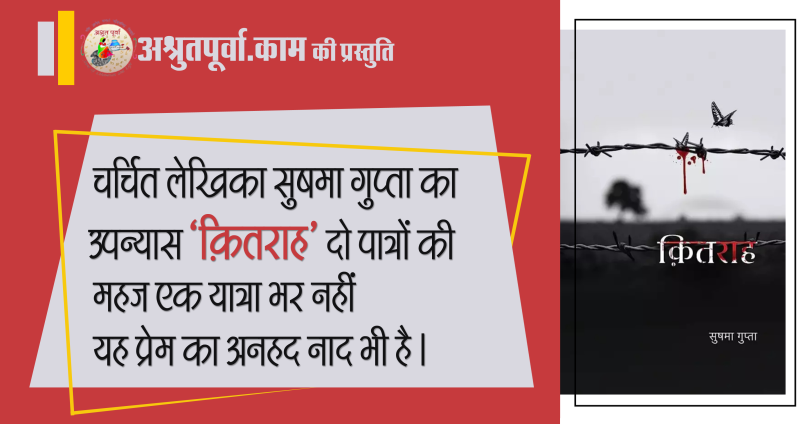 सुषमा गुप्ता का यह उपन्यास स्नेह में आबद्ध दो पात्रों की महज एक यात्रा भर नहीं है। यह प्रेम का अनहद नाद भी है। नायिका क़ितारा ने अपने नाम के अनुरूप पूरे उपन्यास में जैसे खुशबू बिखेर दी है। दो अजनबी स्त्री और पुरुष धीरे-धीरे इस कदर करीब आते हैं कि दोनों के बीच एक रूहानी और अंतत: दैहिक रिश्ता भी कायम हो जाता है। इस उपन्यास में ईश्वर से शिकवा भी है। यह शिकायत खुद कितारा की है- ‘…सोचती हूं कि कैसा होता होगा ईश्वर का कलेजा जब वह एक सांचे में डालता है विशुद्ध पिघलता प्रेम, फिर ठीक बीचोबीच छुरी से काट के अलग करके, बना देता है दो आकृतियां और दोनों को भेज देता है अलग-अलग परिवेश, अलग-अलग काल और कभी-कभी दो बिल्कुल अलग दुनियाओं में। फिर भी एक रोज दोनों मिल ही जाते हैं नियति के विरूद्ध और रचने लगते हैं एक अपनी अलग अलौकिक दुनिया… क्या मुस्कुराता होगा उस पल ईश्वर!’