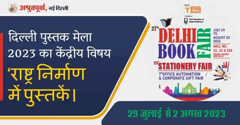 दिल्ली पुस्तक मेले का 27वां संस्करण प्रगति मैदान के हाल नंबर 11,12 और 12ए में आयोजित किया गया है। इस वर्ष मेले का बड़ा महत्व है, क्योंकि यह ‘आजादी का अमृत महोत्सव’ के साथ मेल खाता है, खास तौर से तब जब देश वैश्विक जी20 शिखर सम्मेलन आयोजित कर रहा है। इस साल दिल्ली पुस्तक मेला 2023 का केंद्रीय विषय ‘राष्ट्र निर्माण में पुस्तकें’ है।