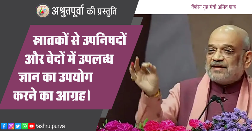 केंद्रीय गृह मंत्री ने इस अवसर पर स्नातकों से उपनिषदों और वेदों में उपलब्ध ज्ञान के भंडार का उपयोग करने का आग्रह किया। उन्होंने कहा कि वे अंग्रेजी के खिलाफ नहीं हैं। भारत एक ऐसा देश है जो किसी भी प्रकार के ज्ञान का विरोध नहीं कर सकता।