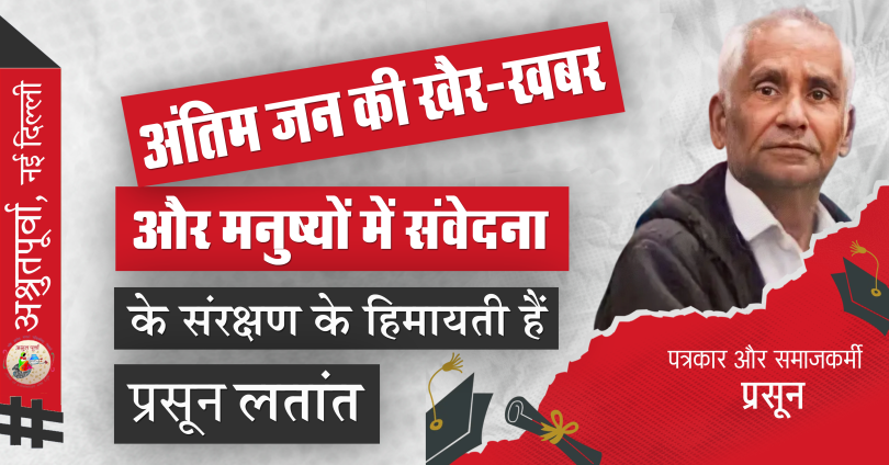 नई दिल्ली। लेखक, पत्रकार और समाजकर्मी प्रसून लतांत को राष्ट्रीय सद्भावना सम्मान 2023 देने की घोषणा की गई है। उन्हें यह विशिष्ट सम्मान जयपुर में मानव सेवा ट्रस्ट की ओर से 21 अगस्त को एक समारोह में प्रदान किया जाएगा। वे मानवीय मूल्यों की रक्षा और मानव अधिकारों को बचाने के लिए हो रहे प्रयास में सतत योगदान देते रहे हैं।