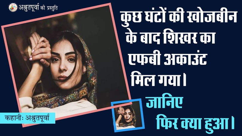 घर पर पहुंच कर उसने शिखर का नाम मोबाइल फोन पर सर्च किया। फेसबुक और ट्विटर पर ढूंढा। कुछ घंटों की खोजबीन के बाद शिखर का एफबी अकाउंट मिल गया। वह बड़ी बारीकी से हर फोटो को देखने लगीं। फिर अचानक ही न जाने क्या सोच कर फ्रेंड रिक्वेस्ट भेज दिया। अगले दिन आॅफिस गई तो बॉस के केबिन में उसे बुलाया गया। वहां शिखर को देख कर सकपका गई। बॉस ने दोनों का परिचय कराया। और बताया कि शाम की पार्टी के लिए निमंत्रण देने आए हैं शिखर।