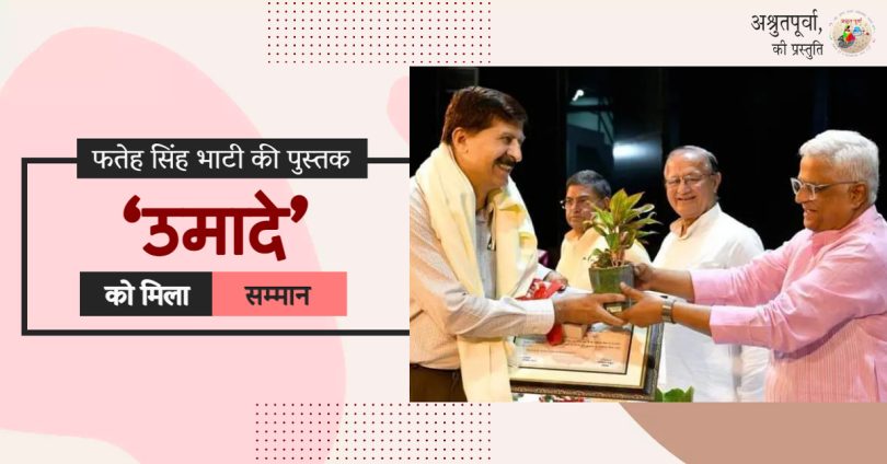 नई दिल्ली। पिछले दिनों हिंदी दिवस के अवसर पर वाणी प्रकाशन से प्रकाशित पुस्तक ‘उमादे’ के लेखक डॉ. फतेह सिंह भाटी को हिंदी सेवा पुरस्कार 2023 से सम्मानित किया गया। मुख्य अतिथि राजस्थान के शिक्षा मंत्री डॉ. बीडी कल्ला ने उन्हें प्रशंसा पत्र दिया। कार्यक्रम के अध्यक्ष और उच्च शिक्षा मंत्री राजस्थान सरकार, राजेंद्र यादव ने कृति उमादे के लिए पुरस्कारस्वरूप 50 हजार रुपए का चेक इस अवसर पर भेंट किया। स्कूली शिक्षा, भाषा एवं पुस्तकालय विभाग के शासन सचिव नवीन जैन ने डॉ. भाटी को शाल ओढ़ा कर सम्मानित किया।