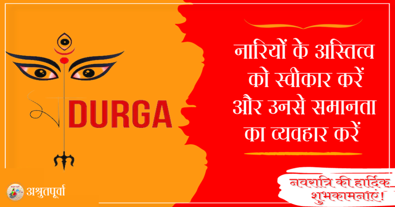 आज इस पर्व पर मैं अश्रुत पूर्वा के माध्यम से सभी से आह्वान करती हूं कि आप मां दुर्गा की भक्ति का त्योहार मनाते हुए वास्तव में नारियों का सम्मान करें। इस पर्व की सार्थकता इसी में है। तभी न केवल घर-परिवार में बल्कि समाज में सुख-समृद्धि और शांति आएगी। हम आज सभी नकारात्मक शक्तियों को खत्म कर अपने हृदय को सकारात्मक सोच से आलोकित करें।