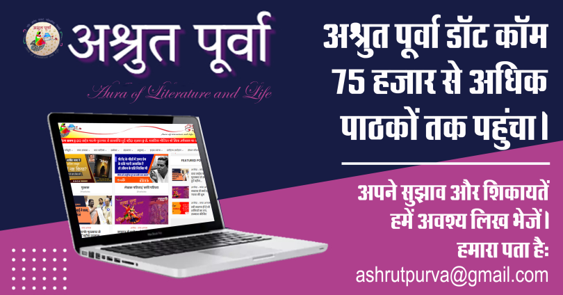 हमें यह बताते हुए प्रसन्नता हो रही है कि तमाम बाधाओं और सीमित संस्धानों के बावजूद अश्रुत पूर्वा के अब 25 हजार से अधिक नियमित पाठक हैं। यह संख्या धीरे-धीरे ही सही, लेकिन बढ़ रही है। इसके अलावा हम यह बताने चाहते हैं कि अश्रुत पूर्वा अब तक 75 हजार से अधिक पाठकों तक पहुंचने में कामयाब रहा है। यानी देश के कोने कोने में कोई न कोई पाठक जरूर है जिसने अश्रुत पूर्वा को पढ़ा है।