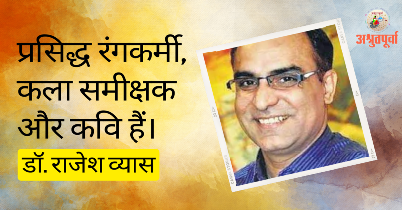 डॉ. राजेश व्यास प्रसिद्ध रंगकर्मी, कला समीक्षक और कवि हैं। इससे पहले उन्हें साहित्य अकादेमी का सर्वोच्च सम्मान मिल चुका है। डॉ. व्यास ने साहित्य की कई विधाओं में लिखा है। उनकी 23 पुस्तकें प्रकाशित हो चुकी हैं। इसके अलावा वे भारतीय लेखक प्रतिनिधिमंडल में शामिल होकर फ्रांस और नेपाल जा चुके हैं।