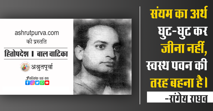 - संयम का अर्थ घुट-घुटकर जीना नहीं है, स्वस्थ पवन की तरह बहना है। -रांगेय राघव