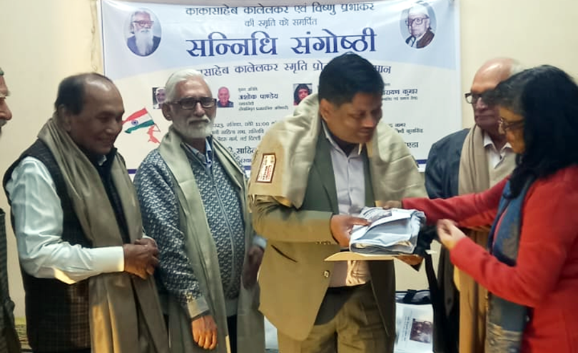 नई दिल्ली। कवि-कथाकार राकेश धर द्विवेदी और भारत में शोध कर रहीं और श्रीलंका के युवाओं व बच्चों को हिंदी सिखा रही सुगंधि कुलसिंघे को शनिवार को काका साहब कालेलकर राष्ट्रीय सम्मान से सम्मानित किया गया। साहित्य के लिए द्विवेदी को यह सम्मान दिया गया। गुजरात की गांधीवादी सामाजिक कार्यकर्ता सुजाता शाह को समाज सेवा के लिए यह सम्मान प्रदान किया गया। वहीं गुजरात की ही स्वतंत्र पत्रकार डॉ. ख्याति पुरोहित को पत्रकारिता के लिए यह सम्मान दिया गया। पर्यावरणविद् जितेंद्र नागर को जन शिक्षण के लिए यह राष्ट्रीय सम्मान मिला। जबकि कला के लिए डॉ. राहुल स्वर्णकार को यह राष्ट्रीय सम्मान प्रदान किया गया।