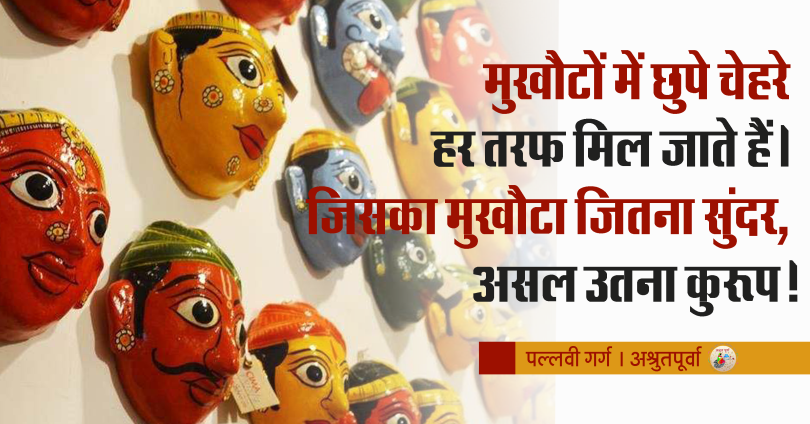 जैसे जैसे उम्र बढ़ी, जवाब भी मिले। मुखौटे के पीछे छुपे हर चेहरे ने जवाब दिए। ये मुखौटे दिखते नहीं। बस होते हैं। मुखौटों में छुपे चेहरे हर तरफ मिल जाते हैं। जिसका मुखौटा जितना सुंदर, असल उतना कुरूप! असली चेहरा सामने आते आते, हानि बहुत हो जाती है। यह बात समझने में बहुत वक़्त भी लगा।