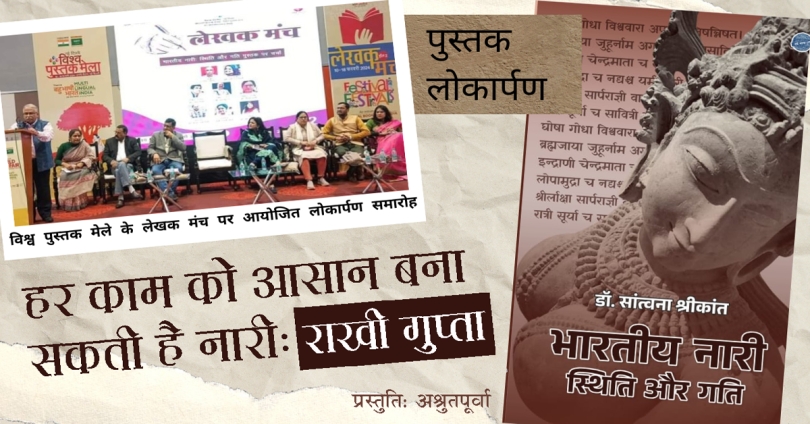 नई दिल्ली। कवयित्री और लेखिका डॉ. सांत्वना श्रीकांत की सद्य प्रकाशित पुस्तक ‘भारतीय नारी : स्थिति और गति’ का लोकार्पण किया गया। विश्व पुस्तक मेले के लेखक मंच पर आयोजित लोकार्पण समारोह में राष्ट्रीय पुस्तक न्यास के अध्यक्ष प्रो. मिलिंद सुधाकर मराठे उपस्थित थे। समारोह में पंजाब सरकार में प्रधान सचिव राखी गुप्ता भंडारी मुख्य अतिथि थीं।