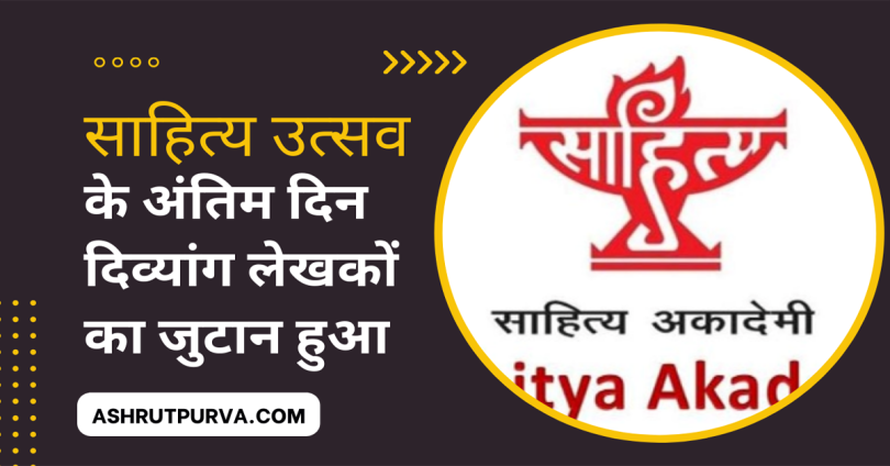 साहित्य उत्सव के अंतिम दिन दिव्यांग लेखकों का जुटान हुआ। इस अवसर पर अंग्रेजी साहित्यकार जीजेवी प्रसाद ने दिव्यांग रचनाकारों से कहा कि वे अपनी विशेष क्षमताओं को पहचान कर उन पर काम करें, उन्हें मंजिल जरूर मिलेगी। इस मौके पर अकादेमी की उपाध्यक्ष कुमुद शर्मा ने कहा कि दिव्यांग लेखकों को अपने आत्मविश्वास की ऊर्जा से आगे बढ़ना पड़ेगा। तभी लक्ष्य तक पहुंच सकेंगे।