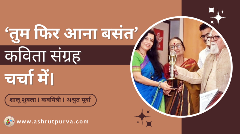नई दिल्ली। कवयित्री शालू शुक्ल का संग्रह ‘तुम फिर आना बसंत’ कई दिनों से चर्चा में है। इस संग्रह को जहां सराहा गया, वहीं इसने शालू शुक्ल को प्रतिष्ठा दिलाई है। उन्हें पिछले दिनों शीला सिद्धांतकर स्मृति सम्मान से सम्मानित किया गया। शालू लखनऊ की हैं और काफी समय से कविताएं रच रही हैं।