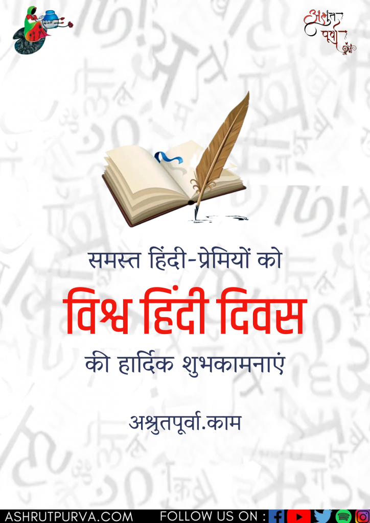 विश्व हिंदी दिवस पर अश्रुत पूर्वा की ओर से सभी पाठकों को शुभकामनाएं।