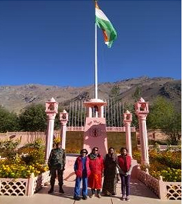 हमराही ने नाम पर पूरे रास्ते में काली सर्पीली सड़कों पर जैतूनी ट्रक ही रेंगते हुए नजर आते थे। भारतीय सेना ठण्ड की तैयारी कर रही थी । इन ट्रकों को देखकर कारगिल -युद्ध के दौरान टेलीविजन पर समाचार में जो देखा था वह भयावह दृश्य आँखों के सामने सजीव हो उठा । यही वह रास्ता है जहां से शहीदों का कारवां गुजरा था । कारगिल-युद्ध के शहीदों के स्मारक पर माखनलाल चतुर्वेदी की प्रसिद्ध कविता ‘पुष्प की अभिलाषा’ लिखी हैं -‘मुझे तोड़ लेना वनमाली! उस पथ पर देना तुम फेंक,मातृभूमि पर शीश चढ़ाने, जिस पथ जावें वीर अनेक’… यह कोई धार्मिक स्थल नहीं है लेकिन आपका सर किसी अंत:प्रेरणा से झुक जाएगा और हाथ अपनेआप जुड़ जाएगें, फिर आप अपनी अंजुली भरने के लिए आस-पास फूल ढूढने लगेंगे ।