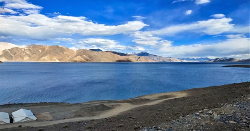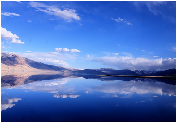द्रास से लौटते समय हम पांगोंग त्सो (झील) की ओर बढ़े । समुद्र तल से लगभग 4500 मीटर की ऊंचाई पर स्थित यह खारे पानी की झील है। इसका एक हिस्सा भारत में और दो तिहाई हिस्सा तिब्बत में है, जो अब चीन के कब्जे में है। पांगोंग त्सो को लद्दाख का नीला कोहिनूर कहूँ तो अतिश्योक्ति न होगी । इसका रास्ता निर्माणाधीन होने के कारण हिचकोलोभरा है। नदी है मगर हरियाली नहीं। बंजर धरती में सफर करते-करते लगता है मानो आँखे भी पथरा जाएगी। धूसर पहाड़ो के बीच में से नीले पानी की यह झील जब प्रकट होगी तो आप पलकें भपकाना भूल जाएगें, आपको लगेगा ये क्या हुआ, इतना सारा नीला पानी, कौन सनकी है जो झील के पानी में नीला रंग मिलाता है?