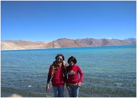 मैं पानी को अपनी मुट्ठी में भरकर धीरे से खोलती हूँ, ये क्या ! कहां गया नीला पानी, मेरी हथेली का रंग,हाथ की रेखाएँ पारदर्शी पानी के पीछे साफ-साफ नजर आ रही थीं । मैं संदेह से फिर झील को देखती हूँ । ये क्या ! पानी ने अपना रंग बदलना शुरू कर दिया कहीं फिरोजी तो कहीं बैंगनी, कहीं आसमानी, कहीं फिर से नीला, कहीं और ज्यादा नीला, मैं एक कदम पीछे हट गई । मेरी कल्पना को पंख लग गए, मुझे दिन में वहाँ नीली परियां उड़ती हुई दिखने लगी, उनके साथ नीली तितलियां उड़ रही थी, कहीं नीले फूल पर बैठ परियां हंस रही थी । लगा जब यहाँ सब शान्त और स्थिर हो जाता होगा तब जरूर कहीं अनहद संगीत भी बजता होगा । सच में, जादुई है यह नीली झील। लेह की धरती बंजर कहाँ है । उसके आँचल में जो नगीना है वो किसी और के पास कहां। धूसर पहाड़ों पर लगनेवाले नीली धूप के मेले में और भी कई चमत्कार हैं लेकिन गिनती के पन्नों में अनंत गगन की कहानी कहाँ समा पाएगी ।