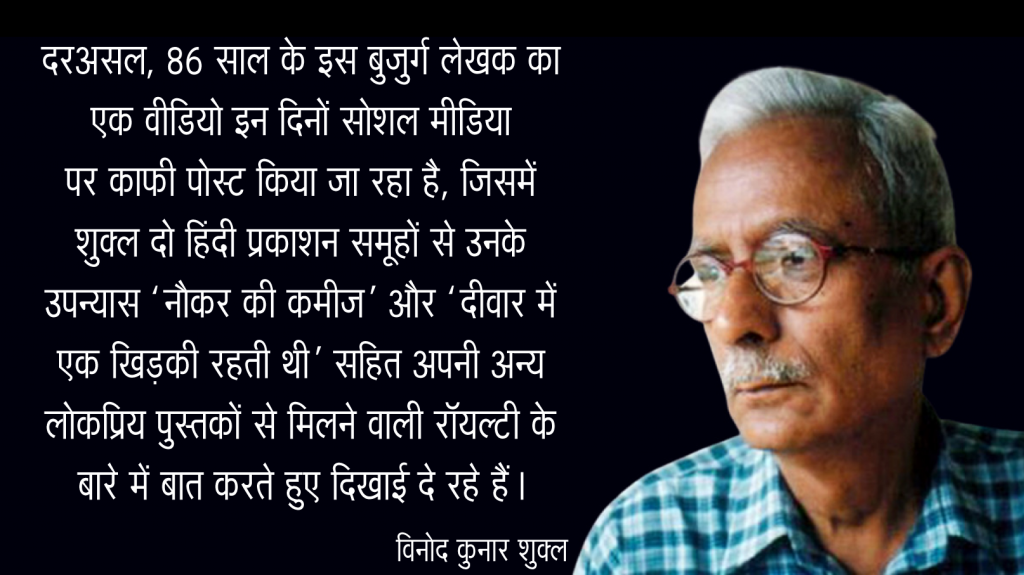 दरअसल, 86 साल के इस बुजुर्ग लेखक का एक वीडियो इन दिनों सोशल मीडिया पर काफी पोस्ट किया जा रहा है, इसमें शुक्ल दो हिंदी प्रकाशन समूहों से उनके उपन्यास ‘नौकर की कमीज’ और ‘दीवार में एक खिड़की रहती थी’ सहित अपनी अन्य लोकप्रिय पुस्तकों से मिलने वाली रॉयल्टी के बारे में बात करते हुए दिखाई दे रहे हैं।