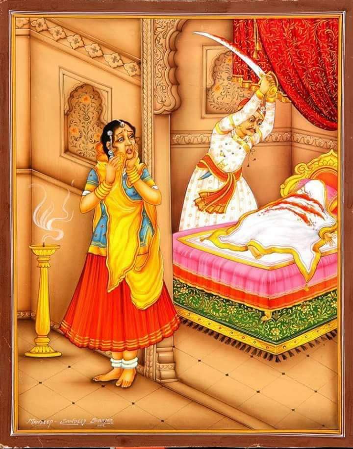 “हाँ, विक्रमादित्य के गद्दी पर बैठने के तीन वर्ष बाद गुजरात के सुल्तान बहादुरशाह ने आक्रमण कर दिया। सामन्तों की सलाह पर विक्रमादित्य और तुम्हारे दाजीराज को छोटे होने के कारण उनके ननिहाल बूँदी भेज दिया गया और सामन्त बाघ सिंह को सेनापति बनाया गया। उनके नेतृत्व में राजपूतों ने केसरिया किया और शत्रु की सेना के साथ लड़ते हुए अपने प्राणों की आहुति दी। जब दुर्ग पर यवनों का अधिकार होने लगा तो तुम्हारी दादी’सा के नेतृत्व में सैकड़ों स्त्रियों ने अग्निकुंड में कूदकर जौहर किया।“