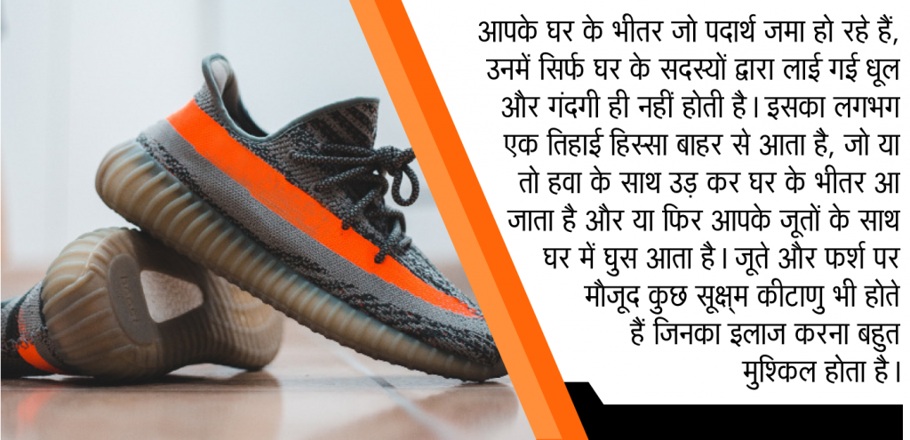 सरकारी नीतियों में मुख्य ध्यान वायु गुणवत्ता, पर्यावरण और सार्वजनिक स्वास्थ्य पर होता है। हालांकि, इनडोर वायु गुणवत्ता को लेकर भी चिंता है। आपके घर के भीतर जो पदार्थ जमा हो रहे हैं, उनमें सिर्फ घर के सदस्यों द्वारा लाई गई धूल और गंदगी ही नहीं होती है। इसका लगभग एक तिहाई हिस्सा बाहर से आता है, जो या तो हवा के साथ उड़ कर घर के भीतर आ जाता है और या फिर आपके जूतों के साथ घर में घुस आता है। जूते और फर्श पर मौजूद कुछ सूक्ष्म कीटाणु भी होते हैं जिनका इलाज करना बहुत मुश्किल होता है।