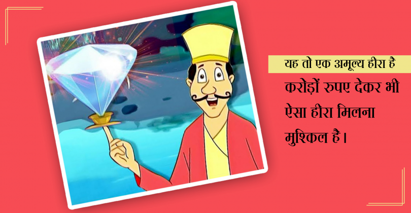 उसके बाद वह युवक एक सुनार के पास गया। सुनार ने पत्थर के बदले 20 हजार देने की बात की। … फिर वह हीरे की एक प्रतिष्ठित दुकान पर गया। वहां उसे पत्थर के बदले एक लाख रुपए का प्रस्ताव मिला और अंत में युवक शहर के सबसे बड़े हीरा विशेषज्ञ के पास पहुंचा और बोला- श्रीमान, कृपया इस पत्थर की कीमत बताने का कष्ट करें। हीरा विशेषज्ञ ने ध्यान से पत्थर का निरीक्षण किया और आश्चर्य से युवक की तरफ देखते हुए बोला- यह तो एक अमूल्य हीरा है, करोड़ों रुपए देकर भी ऐसा हीरा मिलना मुश्किल है।