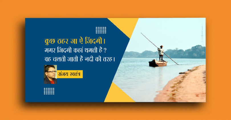 … जैसे जिंदगी कभी थमती नहीं, वैसे मेरे पांवों के नीचे से नदी बह रही है। थमना उसका काम नहीं। उसे तो चलते जाना है इसी जिंदगी की तरह। अच्छा नहीं लग रहा इसलिए गंगा मैया को हाथ जोड़ कर प्रणाम कर रहा हूं और श्रद्धा सुमन अर्पित तकर रहा हूं। नदी के पानी में अपना चेहरा देख रहा हूं। बचपन का चेहरा दिख रहा है। आंखों के आगे मोहन बाबू का चेहरा घूम गया है। कौन मोहन बाबू? जानते हैं आप? …एक ऐसा गृहस्थ जो अमूमन हर भारतीय परिवार में होते हैं और जो परिवार की देखभाल में पूरा जीवन गला देते हैं। उन्हीं का तर्पण करने तो आया हूं गंगा किनारे। मगर लगता है मैंने खुद को श्रद्धांजलि दे दी है। गंगा नदी मेरे बिल्कुल पास से बह रही रही है। चंद फूल उसकी आंचल में फिर से डाल दिए हैं मैंने। मइया एक दिन मुझे भी ले जाना अपनी लहरों में।