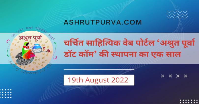 नई दिल्ली। चर्चित साहित्यिक वेब पोर्टल ‘अश्रुत पूर्वा डॉट कॉम’ की स्थापना का एक साल पूरा होने जा रहा है। इस अवसर पर नई दिल्ली स्थित कॉन्सटीट्यूशन क्लब में एक विशेष समामरोह आयोजित होगा। उन्नीस अगस्त, दोपहर बाद तीन बजे से शाम पांच बजे तक चलने वाले इस कार्यक्रम में कई साहित्यकार और बुद्धिजीवी सम्मिलित होंगे। इस आयोजन में मुख्य अतिथि मध्य प्रदेश विधानसभा के अध्यक्ष श्री गिरीश गौतम होंगे। जबकि विशिष्ट अतिथि राष्ट्रीय स्मारक प्राधिकरण के अध्यक्ष और लेखक श्री तरुण विजय होंगे। हिंदी चेतना मासिक और लघुकथा डॉट कॉम के संपादक श्री रामेश्वर कांबोज ‘हिमांशु’ सम्मानित अतिथि होंगे।