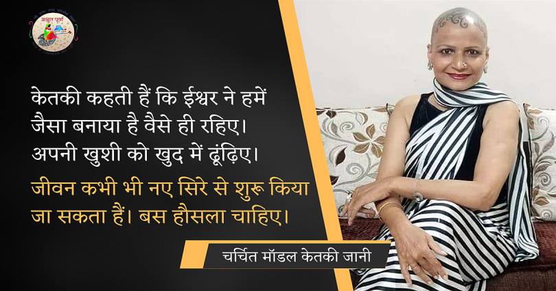 तो कौन हैं यह केतकी जानी, जिसकी यहां चर्चा हो रही है। अमदाबाद में जन्मी केतकी के जीवन में सब कुछ अच्छा चल रहा था। बच्चे-पति के साथ एक सुखमय परिवार। मगर मई 2010 में एक दिन सब कुछ बिखर गया, जब ये पता चला कि उन्हें एलोपेसिया नाम की कोई बीमारी हो गई है। इसके बाद तो उनके बाल तेजी से गिरने लगे। स्टेरायड केवल अस्थायी उपचार था, जिसका भयावह असर झेलना पड़ा। उस पर से समाज के चुभते सवाल। लोग पूछते कि केतकी क्या हो गया।