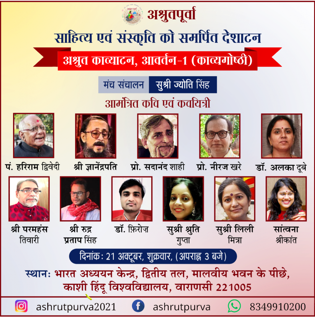 अश्रुत पूर्वा के लिए यह आयोजन इसलिए भी महत्त्वपूर्ण है कि इसे काशी विश्वविद्यालय के प्रांगण में आयोजित किया जा रहा है। भारत अध्ययन केंद्र के द्वितीय तल पर अपराह्न तीन बजे से आयोजित होने वाले इस काव्याटन में शहर के कई बड़े कवि-कवयित्रियों ने इसमें भाग लेने की पुष्टि कर दी है। इनमें प्रमुख हैं-प्रो. सदानंद शाही, श्री ज्ञानेंद्रपति, प्रो. नीरज खरे, डॉ. अलका दुबे, डॉ. फिरोज, श्री परमहंस तिवारी, श्री रुद्र प्रताप सिंह और ज्योति सिंह प्रमुख हैं। दिल्ली राष्ट्रीय राजधानी क्षेत्र से डॉ. सांत्वना श्रीकांत और श्रीमती लिली मित्रा प्रतिनिधित्व करेंगी।