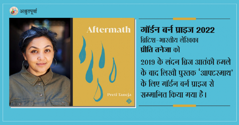 नई दिल्ली। साहित्य का नोबेल दिए जाने के बाद बुकर पुरस्कार का एलान हुआ, फिर 2022 के बर्न प्राइज की भी घोषणा कर दी गई। यह पुरस्कार मिला है ब्रिटिश-भारतीय लेखिका प्रीति तनेजा को। उन्हें 2019 के लंदन ब्रिज आतंकी हमले के बाद लिखी पुस्तक ‘आफ्टरमाथ’ के लिए गॉर्डन बर्न प्राइज से सम्मानित किया गया है। लेखिका प्रीति का कहना है कि ‘आफ्टरमाथ’ वह सबसे मुश्किल किताब है, जिसे लिखने की उन्होंने हिम्मत जुटाई।