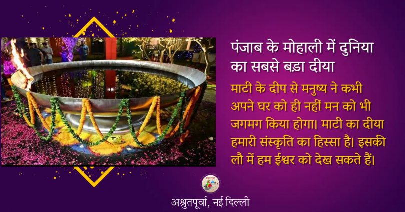 मोहाली से मिली खबरों के मुताबिक पिछले दिनों विश्व रिकॉर्ड के साथ संपन्न हुए इस आयोजन के लिए दस हजार से अधिक लोगों ने तेल दिया। विश्व शांति, एकता, धर्मनिरपेक्षता और मानवता का संदेश देने के लिए लगभग एक हजार किलो का स्टील से बना और 3.37 मीटर व्यास वाले दुनिया के सबसे बड़े दीपक को लेफ्टिनेंट जनरल (सेवानिवृत्त) केजे सिंह ने प्रज्वलित किया। विविधता का प्रतिनिधित्व करने वाले ‘हीरो होम्स’ के निवासियों सहित दस हजार से अधिक नागरिकों ने शांति के इस अनूठे प्रतीक के लिए 3,129 लीटर तेल की व्यवस्था की।