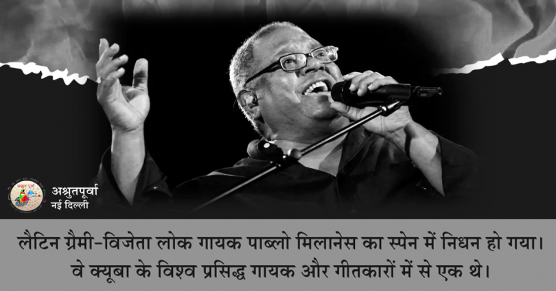 नई दिल्ली। लैटिन ग्रैमी-विजेता लोक गायक पाब्लो मिलानेस का स्पेन में निधन हो गया। वहां उनका रक्त कैंसर का इलाज चल रहा था। वे 79 वर्ष के थे। मिलानेस ने क्यूबा में फिदेल कास्त्रो की क्रांति के लिए सांस्कृतिक राजदूत के रूप में दुनिया भर का दौरा किया था। वे क्यूबा के विश्व प्रसिद्ध गायक और गीतकारों में से एक थे।