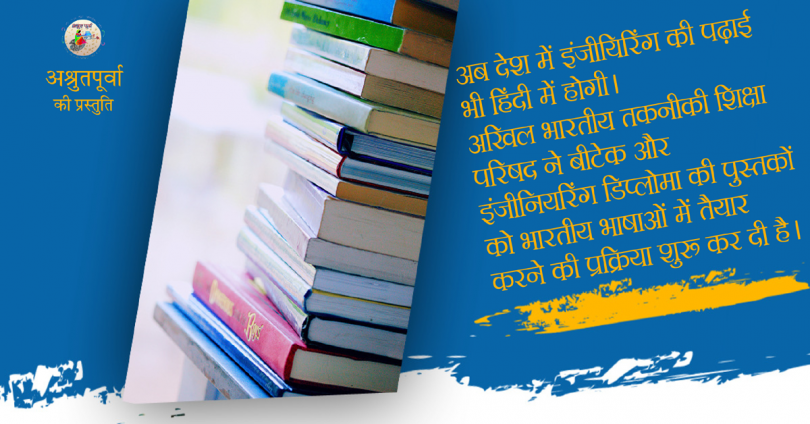 नई दिल्ली, 23 नवंबर। चिकित्सा पाठ्यक्रम की पुस्तकें हिंदी में लाने के बाद क्या अब देश में इंजीयिरिंग की पढ़ाई भी हिंदी में होगी। इस पर चर्चा हो ही रही थी कि इस बीच ऐसी खबरे मिल रही हैं कि अखिल भारतीय तकनीकी शिक्षा परिषद (एआइसीटीई) ने बीटेक और इंजीनियरिंग डिप्लोमा की पुस्तकों को 12 भारतीय भाषाओं में तैयार करने की प्रक्रिया शुरू कर दी है।