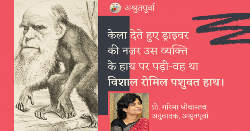 ड्राइवर में एक अजीब सी विरक्ति पैदा हो रही थी, फिर उसे लगा कि साथ ड्राइवर की पिछली सीट पर बैठा प्राणी गंभीर भाव से चुपचाप एक केले का छिलका उतार रहा है। यह दसवाँ हो सकता है।