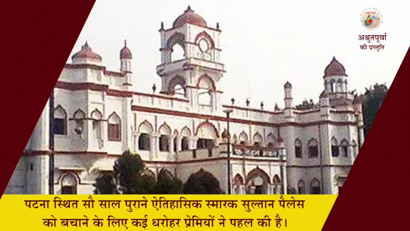 नई दिल्ली। सौ साल पुराने सुल्तान पैलेस को बचाने के लिए कई धरोहर प्रेमियों ने पहल की है। इसके प्रति एकजुटता जताने के लिए वे सामाजिक मंच पर मुखर हो रहे हैं। पटना स्थित इस इमारत को गिरा कर वहां पांचसितारा होटल बनाने की योजना है। धरोहर प्रेमी इसका विरोध कर रहे हैं। इससे पहले पटना उच्च न्यायालय ने इस ऐतिहासिक स्मारक को गिराने पर रोक लगा दी थी। पिछले दिनों सुल्तान पैलेस के प्रति अपनी एकजुटता दिखाने के लिए कई धरोहर प्रेमियों ने अपने सोशल मीडिया अकाउंट पर इसकी तस्वीर लगाई।