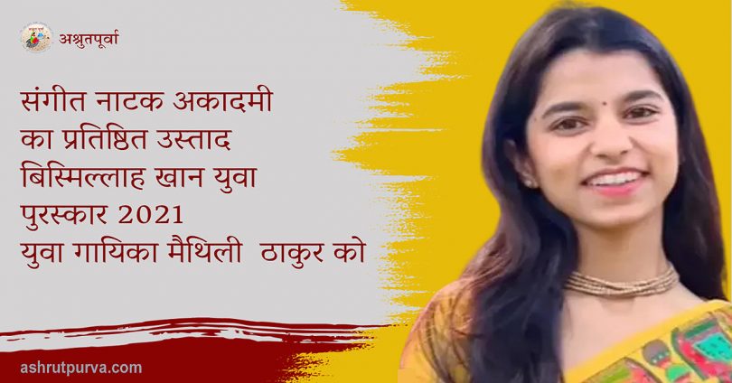 नई दिल्ली। गायिका मैथिली ठाकुर को बिहार के लोक संगीत में उनके योगदान के लिए साल 2021 के संगीत नाटक अकादमी के प्रतिष्ठित उस्ताद बिस्मिल्लाह खान युवा पुरस्कार दिए जाने की घोषणा की गई है। इस घोषणा के बाद युवा गायिका मैथिली ने कहा कि इस पुरस्कार से उन्हें बिहार के लोक संगीत को आगे बढ़ाने की प्रेरणा मिली है।