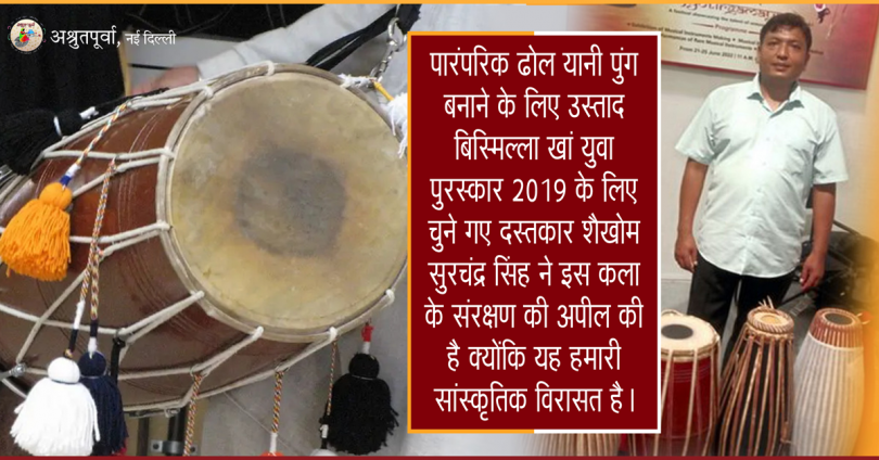 पारंपरिक ढोल यानी पुंग बनाने के लिए उस्ताद बिस्मिल्ला खां युवा पुरस्कार 2019 के लिए चुने गए दस्तकार शैखोम सुरचंद्र सिंह ने इस कला के संरक्षण की अपील की है। उन्होंने कहा कि हम इस कला को संरक्षित करना चाहते हैं क्योंकि यह हमारी सांस्कृतिक विरासत है।
