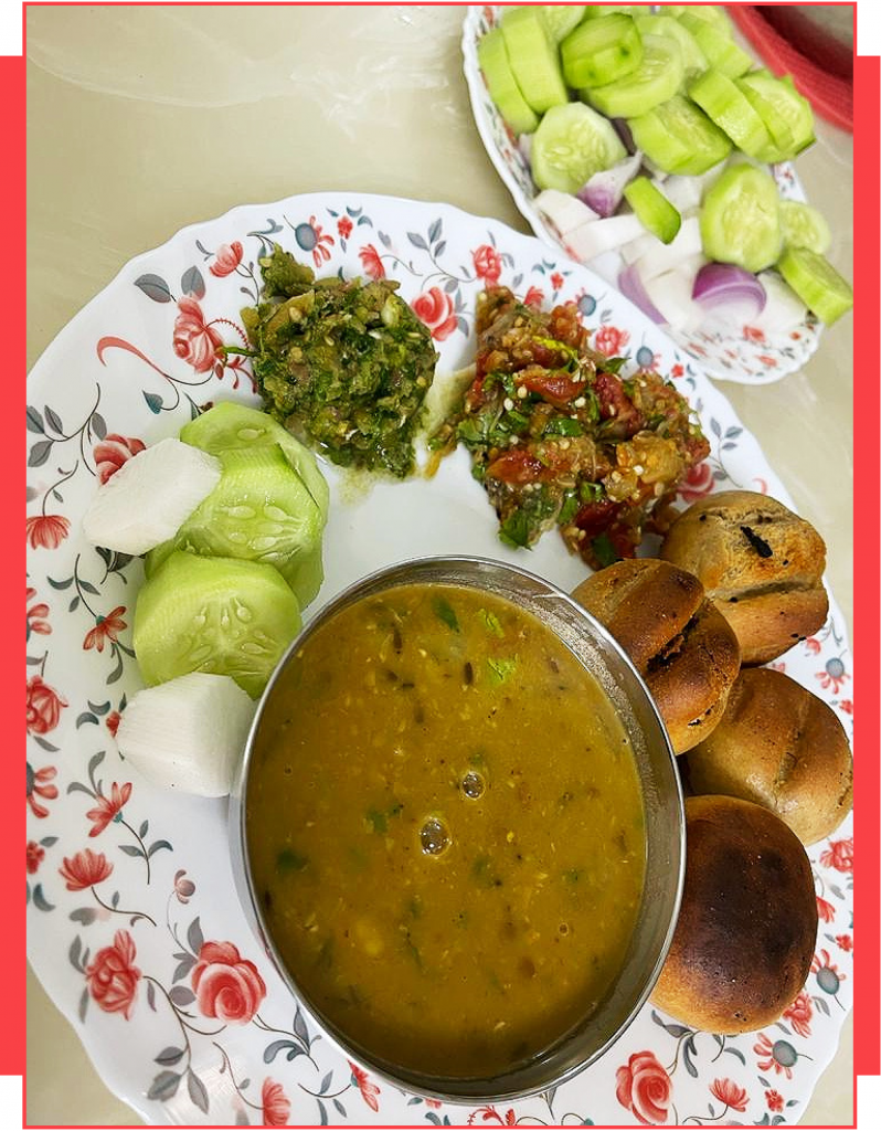 स्वादिष्ट दाल बाटी चोखा तैयार है।