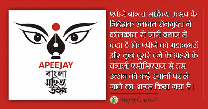 नई दिल्ली। एपीजे बंगाली साहित्य उत्सव अब देश के विभिन्न शहरों में आयोजित किया जाएगा। कोलकाता में जारी की गई विज्ञप्ति के अनुसार पिछले दिनों एपीजे बांग्ला साहित्य उत्सव के आठवें संस्करण के समापन के दौरान यह एलान किया गया। इसमें बताया गया है कि यह उत्सव अगले साल 2023 से देश भर में होगा।