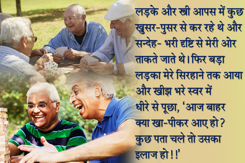 लड़के और स्त्री आपस में कुछ खुसर-पुसर से कर रहे थे और सन्देह- भरी दृष्टि से मेरी ओर ताकते जाते थे। फिर बड़ा लड़का मेरे सिरहाने तक आया और खीझ भरे स्वर में धीरे से पूछा, “आज बाहर क्या खा-पीकर आए हो? कुछ पता चले तो उसका इलाज हो!!”