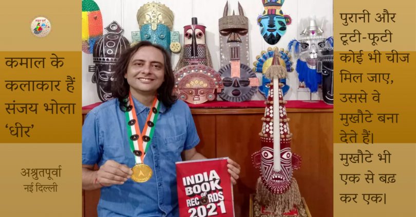 कलाकार हैं- संजय भोला ‘धीर’ जो मुखौटा कलाकार के रूप में जाने जाते हैं। उनकी कलाकारी की सबसे रोचक बात यह है कि वे स्क्रैप मेटल से मुखौटे बनाते हैं। वे विभिन्न जातियों, जनजातियों व देश-विदेश के रीति-रिवाजों और अनुष्ठानों से जुड़े मुखौटे बनाने के अलावा ऐसे अमूर्त विषयों को भी अपनी कला का हिस्सा बनाते हैं जो मानवता के नाम संदेश देने में अपनी सार्थक भूमिका निभा रहे हैं।