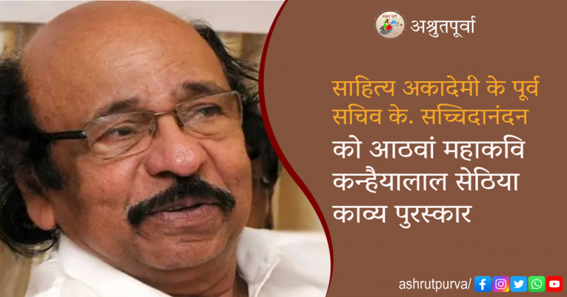 नई दिल्ली। अग्रणी कवि, आलोचक और अनुवादक के. सच्चिदानंदन को आठवां महाकवि कन्हैयालाल सेठिया काव्य पुरस्कार दिया जाएगा। सच्चिदानंदन साहित्य अकादेमी के पूर्व सचिव रहे हैं। उन्हें जयपुर साहित्य उत्सव (जेएलएफ) के आगामी 16वें संस्करण में इस पुरस्कार से सम्मानित किया जाएगा।