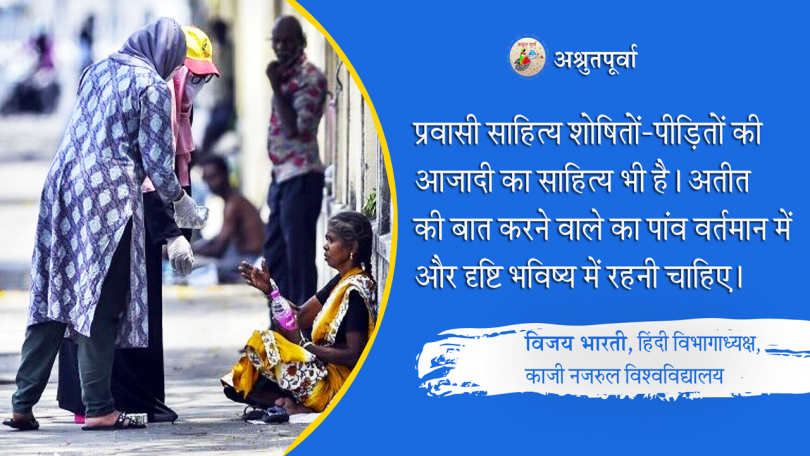 नई दिल्ली। काजी नजरुल विश्वविद्यालय के हिंदी विभागाध्यक्ष विजय भारती ने बीज वक्तव्य देते हुए कहा कि प्रवासी साहित्य शोषितों-पीड़ितों की आजादी का साहित्य भी है। अतीत की बात करने वाले का पांव वर्तमान में और दृष्टि भविष्य में रहनी चाहिए।